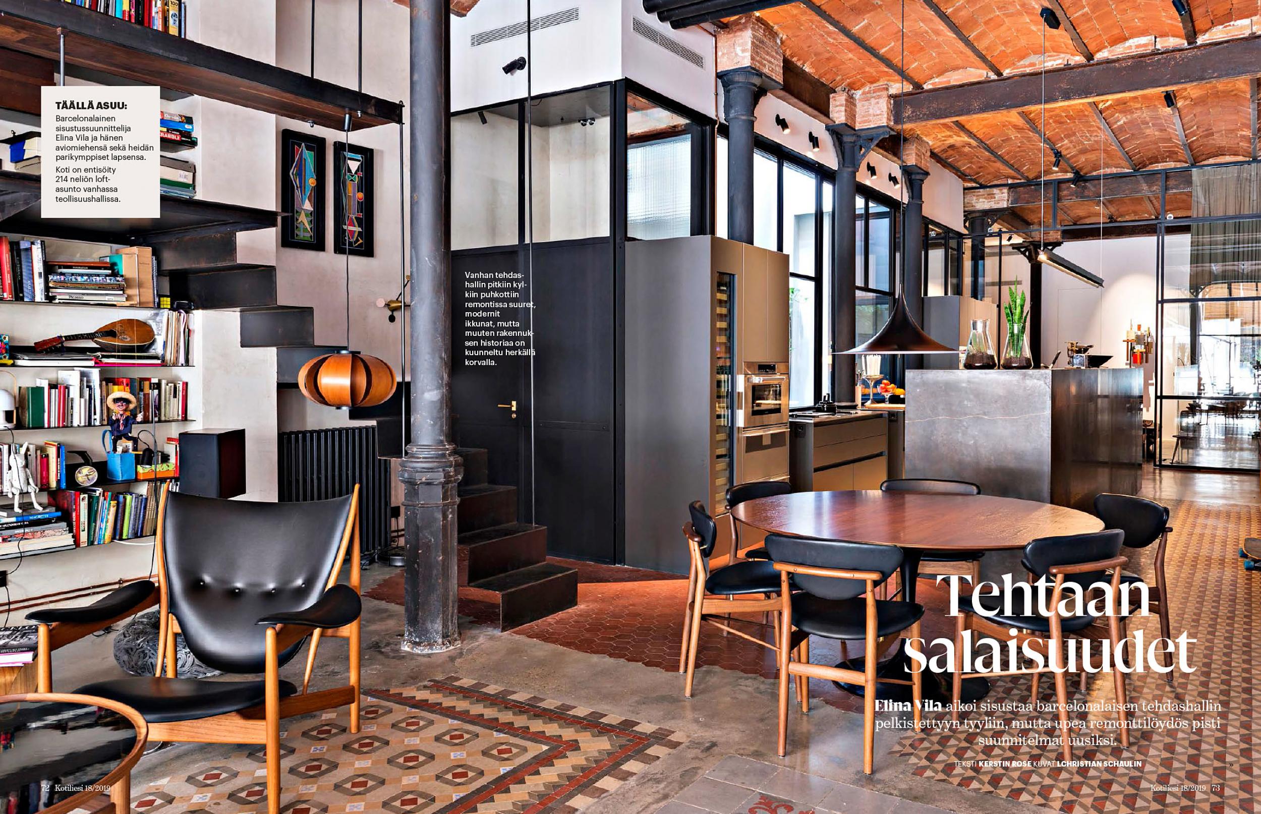 La revista finlandesa Kotiliesi publica el proyecto de arquitectura interior en un loft en Ciutat Vella en Barcelona, que transformó un antiguo almacén textil en un loft de look industrial, dejando intencionadamente a la vista los elementos que evidencian las distintas etapas que vivió el edificio.